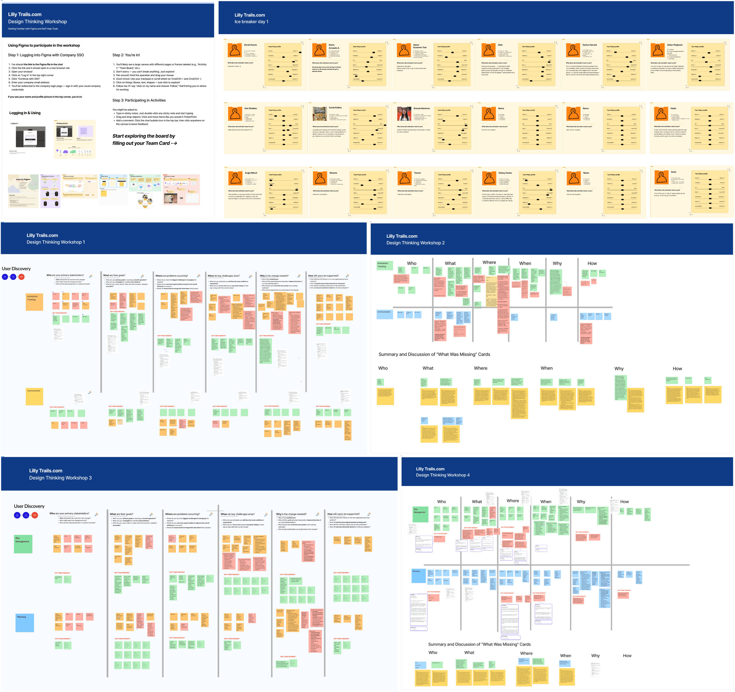 After aligning on the Lilly Trail 3.0 direction with the product team, we ran multiple Design Thinking workshops with real trial participants (patients) and caregivers, clinical-site staff (SC/PI), recruitment & patient engagement, Trial Information Center/customer support, Medical/Legal/Regulatory stakeholders, plus engineering and content partners. These sessions helped us map the end-to-end journey and converge on actionable 3.0 design inputs.
